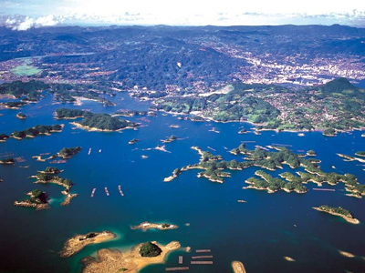 Geographic background regarding the Kujuku Islands and the naval history associated with this port city in Nagasaki Prefecture.